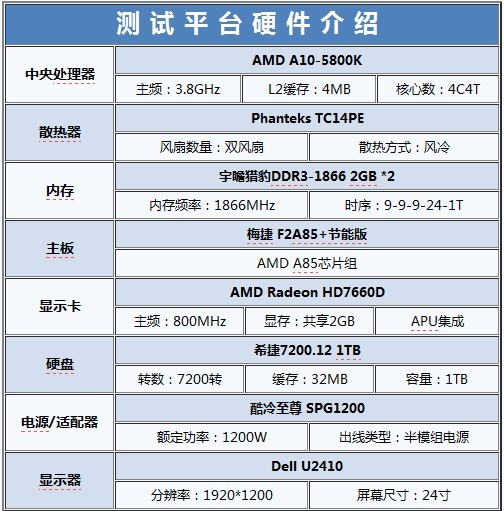 在硬件配置的選擇上,CPU方面為A10-5800K,其自帶的HD7660D獨(dú)顯核心性能不俗,能夠勝任一般游戲。其它硬件的選擇上也較為貼近主流。