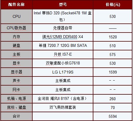 10年前經(jīng)典Intel配置報(bào)價(jià):
