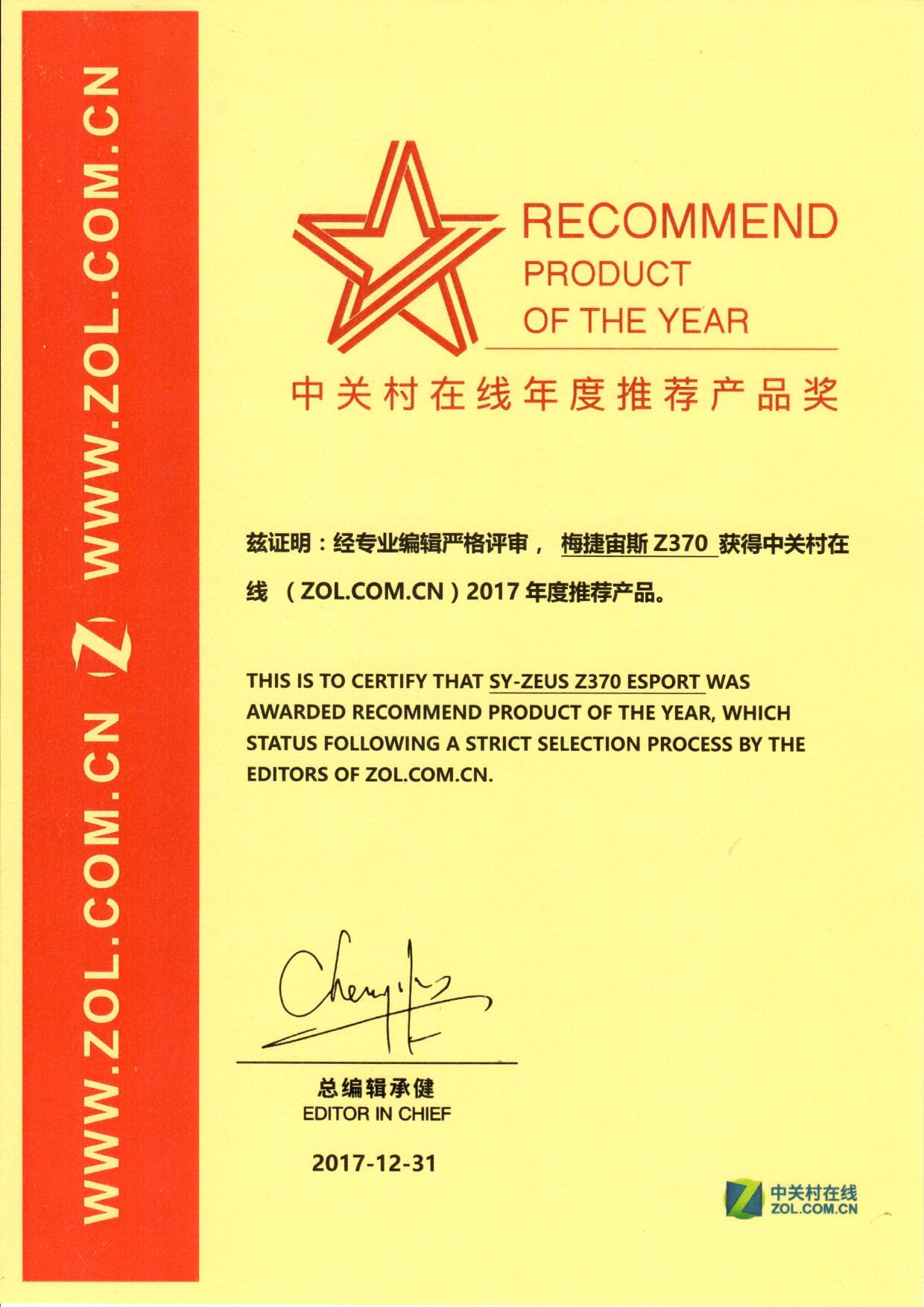 2017年中關(guān)村年度推薦產(chǎn)品榮譽(yù)獎(jiǎng)狀