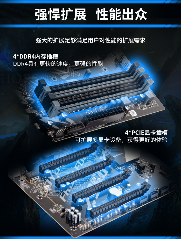 4條PCI-E高速顯卡插槽,支持雙卡交火