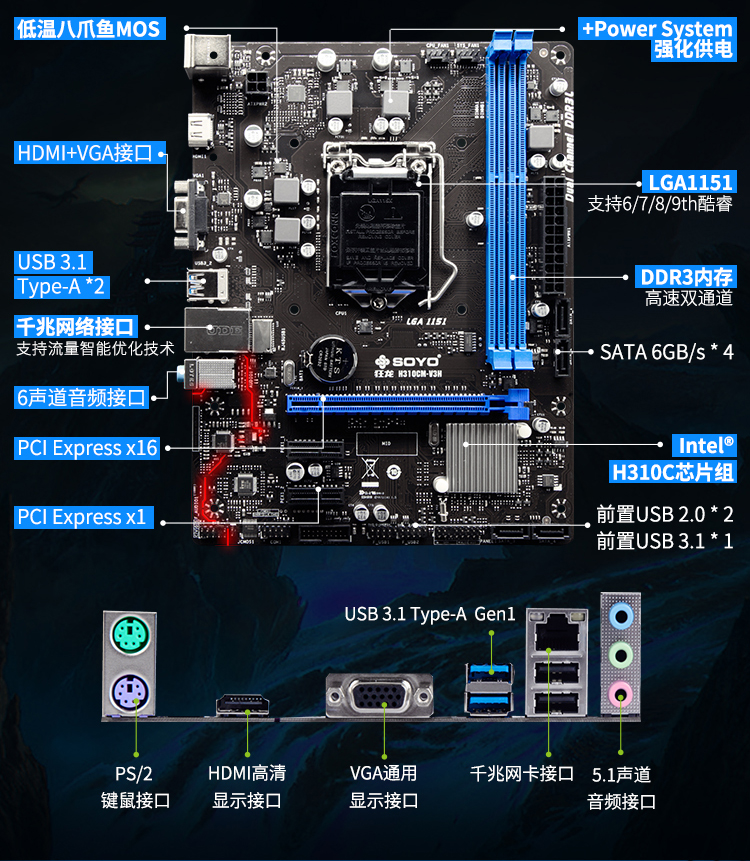 扎實(shí)供電,DDR3內(nèi)存,SATA3.0,USB3.1