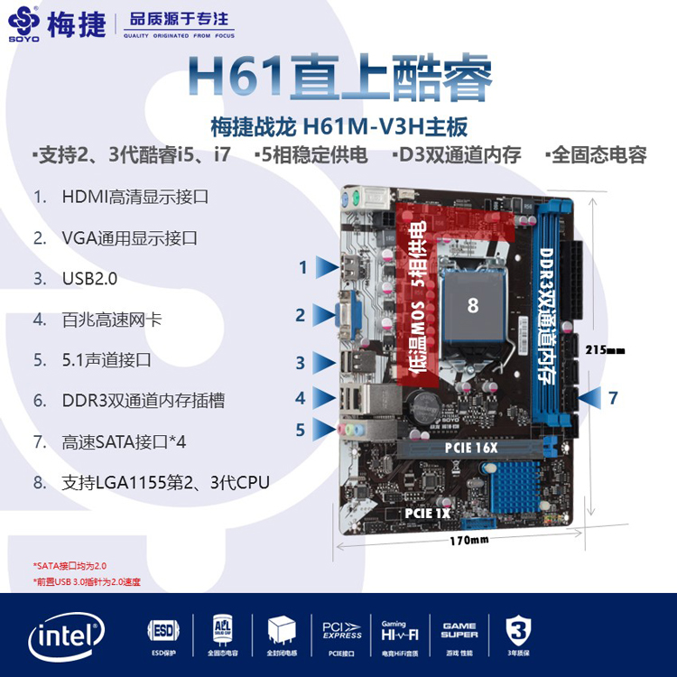 - 扎實供電,DDR3內(nèi)存,全板固態(tài)電容