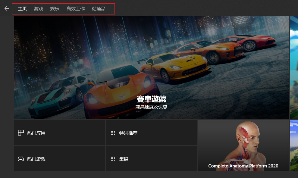 最近的某次更新,令Windows10商城首頁(yè)布局發(fā)生了改變,從原來(lái)的“首頁(yè)、應(yīng)用、游戲”三大分類變成五個(gè)“主頁(yè)”、“游戲”、“娛樂(lè)”、“高效工作”、“促銷品”,促銷產(chǎn)品獨(dú)立了出來(lái)后,更加方便用戶尋找打折商品。游戲和娛樂(lè)分開(kāi),功能細(xì)化是個(gè)不錯(cuò)的變化。