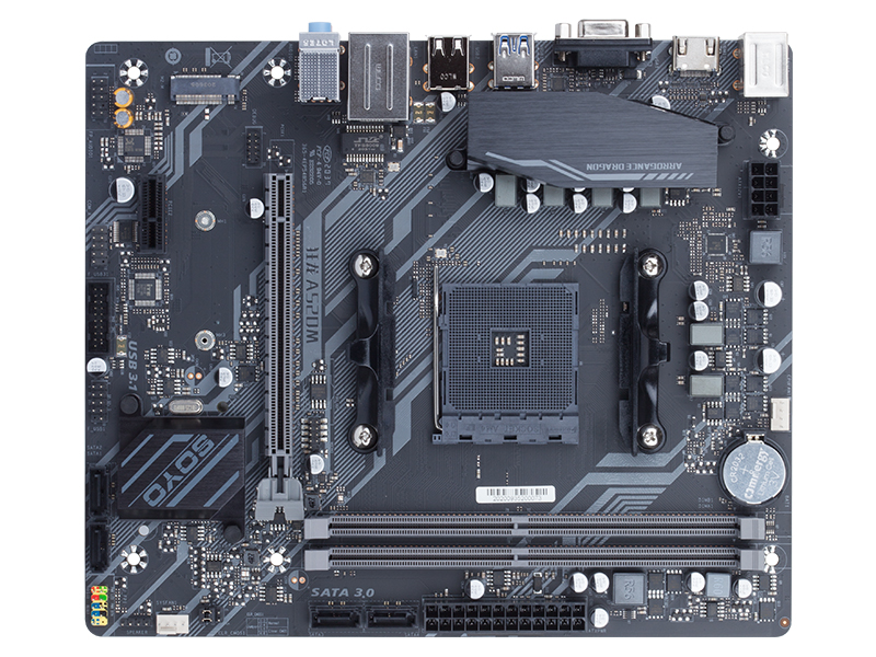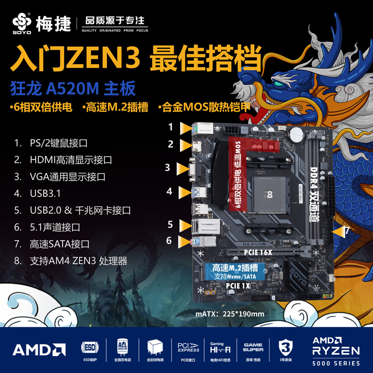 高速M.2接口,顯卡插槽,2條DDR4內(nèi)存槽,六相供電