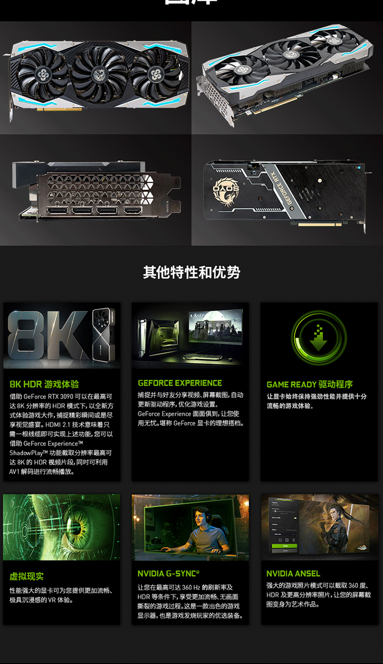 支持Simultaneous Multi-ProjectionVR圖像矯正技術(shù),VRWorks Audio虛擬現(xiàn)實音頻技術(shù),Ansel截圖功能,PhysX物理加速技術(shù),NVIDIA CUDA,NVIDIA REFLEX,PureVideo HD高清硬件解碼,動態(tài)超級分辨率,MFAA,GeForce 3D Vision,GameWorks™,G-Sync™-Ready,GameStream™-Ready,GeForce ShadowPlay™,GPU Boost™