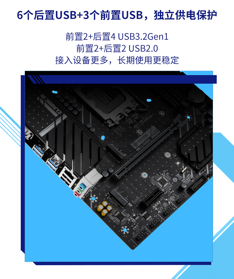 IO處4個(gè)USB3.2 Gen1接口,2個(gè)USB2.0接口;前面板USB3.2 Gen1接口1個(gè),前面板USB2.0接口2個(gè)
