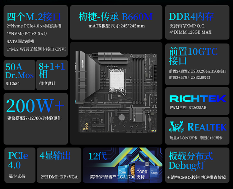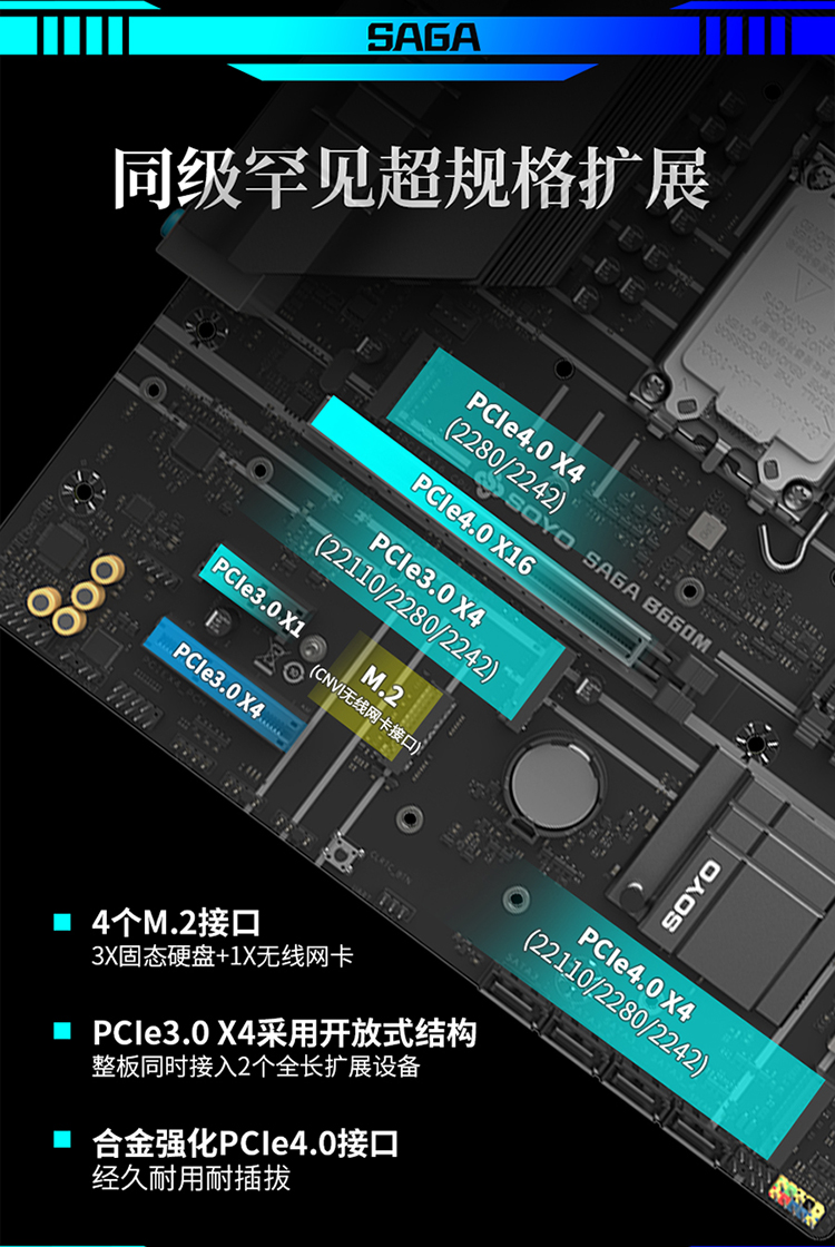 4個(gè)M.2接口(3*M.2硬盤+1*M.2 CNVi)