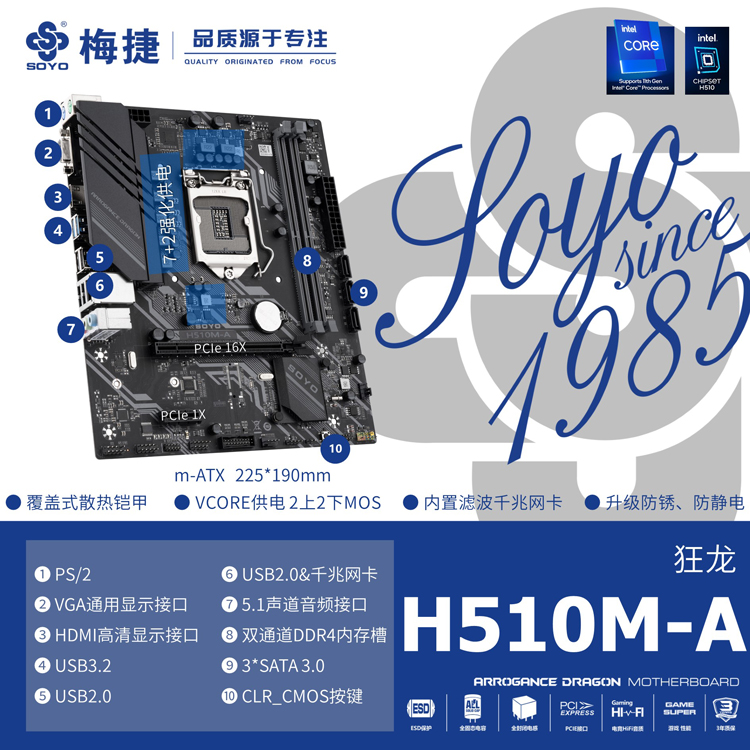 - 2×USB3.2 Gen1;4×USB2.0接口